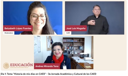 En la mesa de diálogo con personas expertas, Experiencias de trabajo en CAED, personas con discapacidad visual y auditiva compartieron la diversidad de actividades que llevan a cabo dentro del ámbito educativo y se mencionó la relevancia de CAED como un espacio laboral de inclusión de personas con discapacidad.