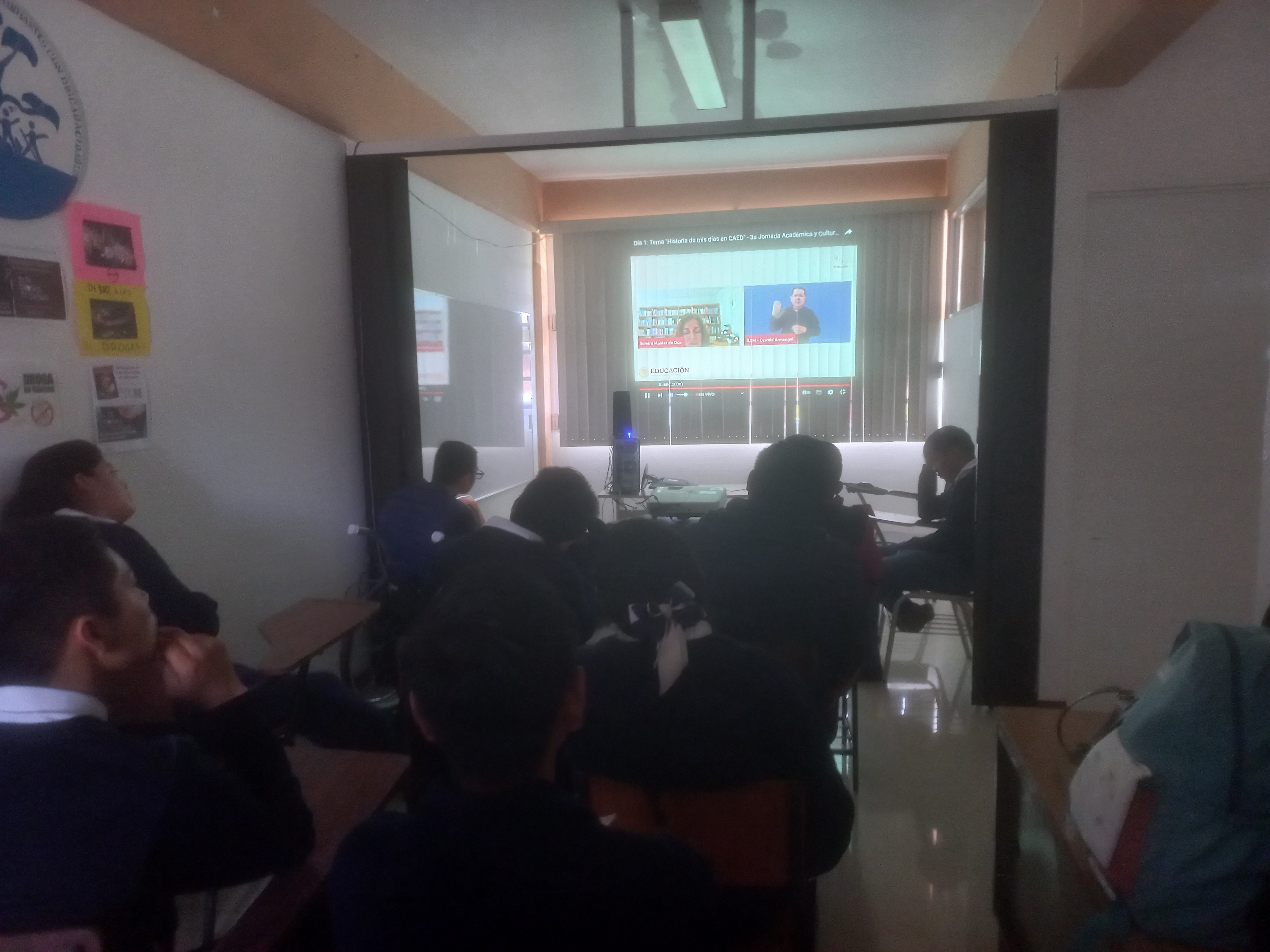 En el marco de las actividades en torno a la implementación de la “Jornada Nacional: Actívate y transforma tu mente”, se realizó la ponencia magistral del Dr. Daniel Aceves Villagrán, Director de la Fundación Alfredo Harp Helú, misma que se difundió con el personal directivo de los 42 planteles adscritos a la Dirección General del Bachillerato, el evento se visualizó de forma masiva donde se reunió el estudiantado o el personal docente en salas audiovisuales, de acuerdo a lo reportado hubo un aproximado de 15 000 estudiantes y 350 docentes que siguieron de forma simultánea el evento.Evidencias: